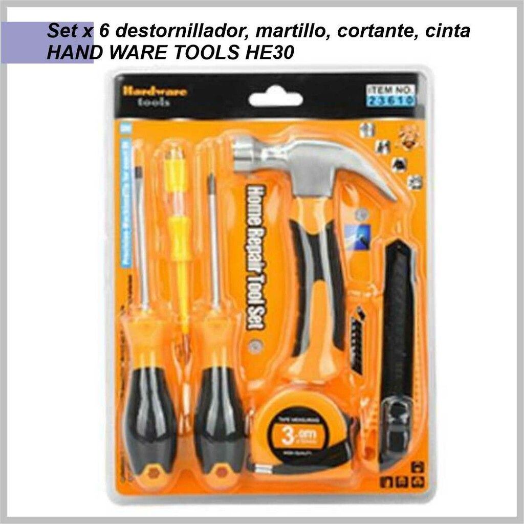 Set x 6 destornillador, martillo, cortante, cinta HAND WARE TOOLS HE30
